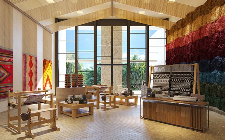 This unique, artisanal hotel experience has 900 suites distributed throughout five buildings called Casas: Casa del Diseño, Casa de los Artistas, Casa de la Pirámide, Casa de la Música and Casa de la Paz. All rooms offer a nature view: sea, river, coves or jungle. Each Casa is a boutique experience with curated amenities and an art workshop where guests can experience art from its origin: weaving, painting, pottery, dance and literature.