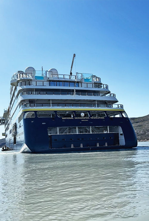 ONBOARD THE NATIONAL GEOGRAPHIC RESOLUTION -- Lindblad Expeditions' two newest ships have all the things that most upscale ships have: a spa, a lounge, two bars, a long table for hosting tasting-menu dinners, tasteful decor, excellent food.